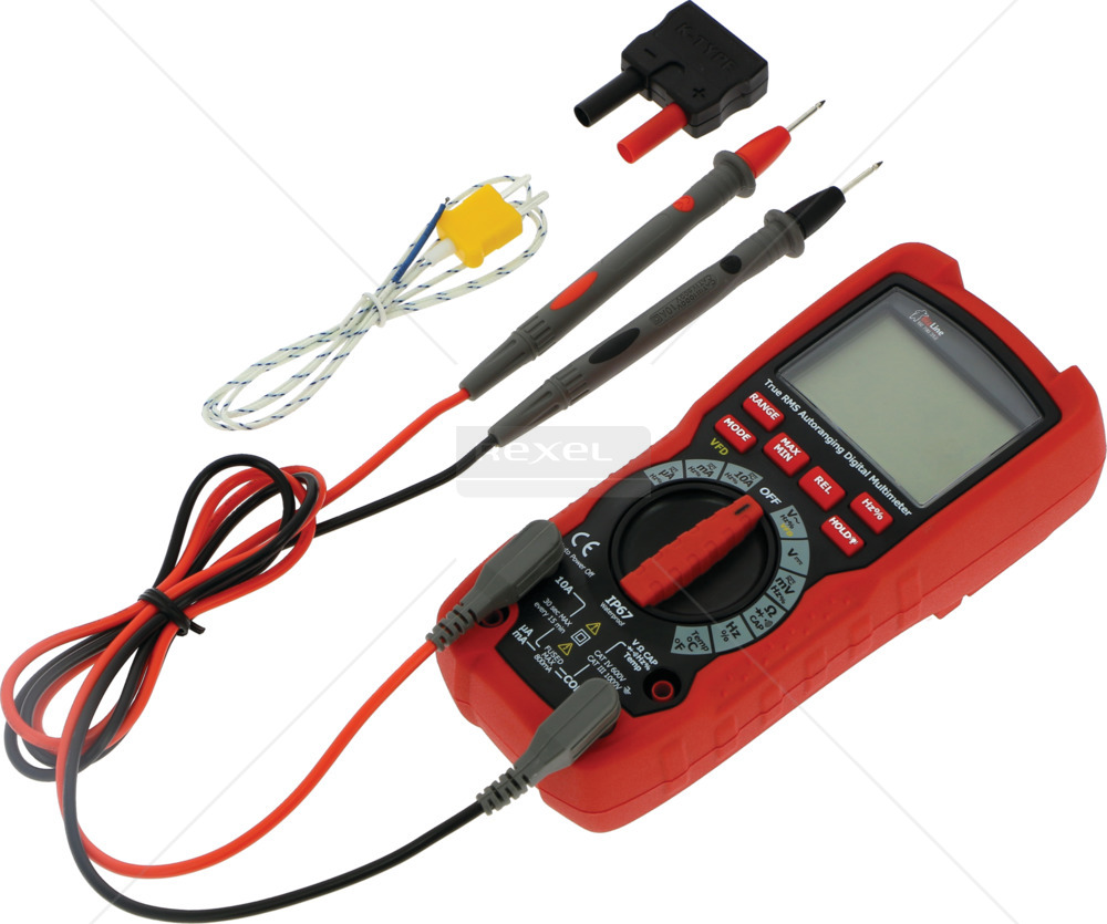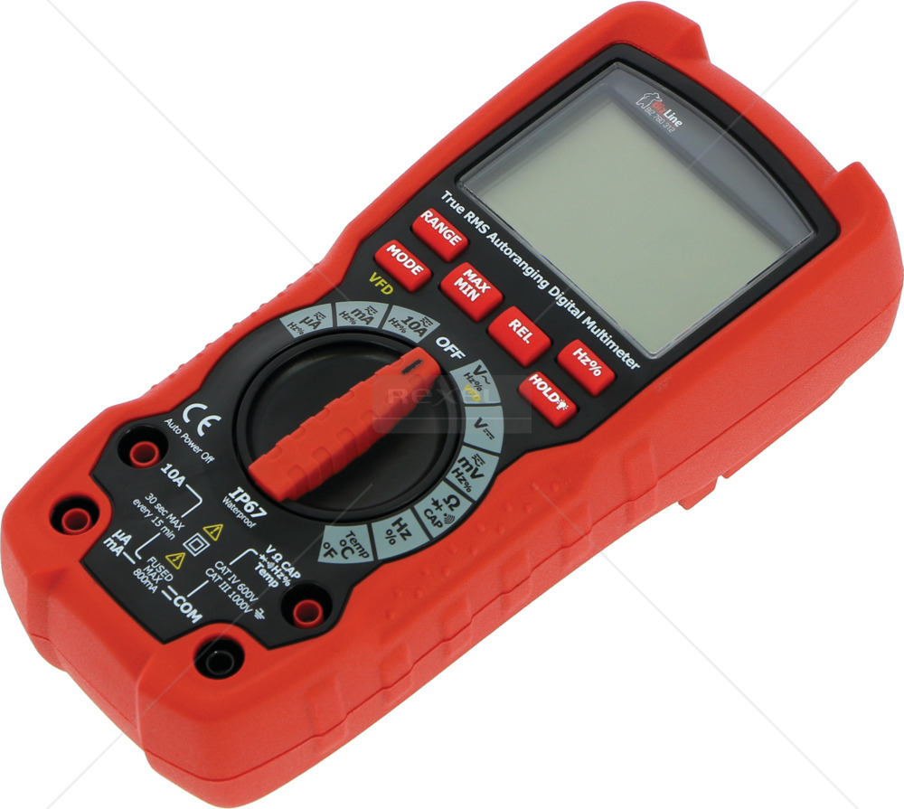 Multimetar za mjerenje AC/DC napona do 600 V, AC/DC struje 10 A, otpora, ima mogućnost ispitivanja kontinuiteta vodiča. To je vodootporan i izdržljiv model, dizajniran za intenzivnu upotrebu.
